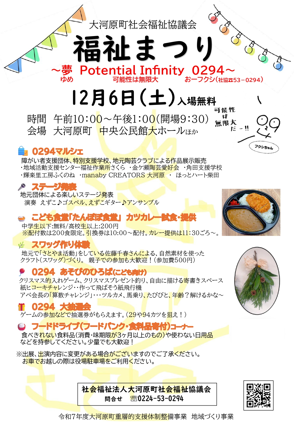 大河原町社会福祉協議会が実施する「福祉まつり」は、大河原町に暮らすすべての人々が、年齢や障がいの有無、子育て中かどうか、生活の状況にかかわらず、誰もが気軽に参加できる場を提供することを目的としています。 このおまつりを通じて、地域の中で支え合う「共助」の取り組みを広げ、誰もが安心して暮らせる地域福祉の推進を目指します。